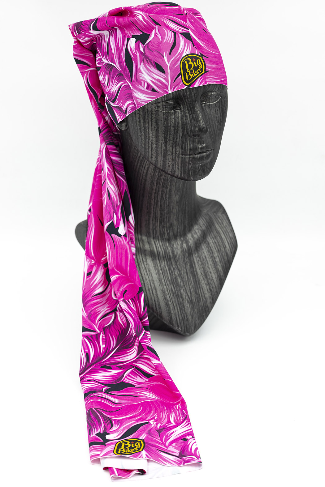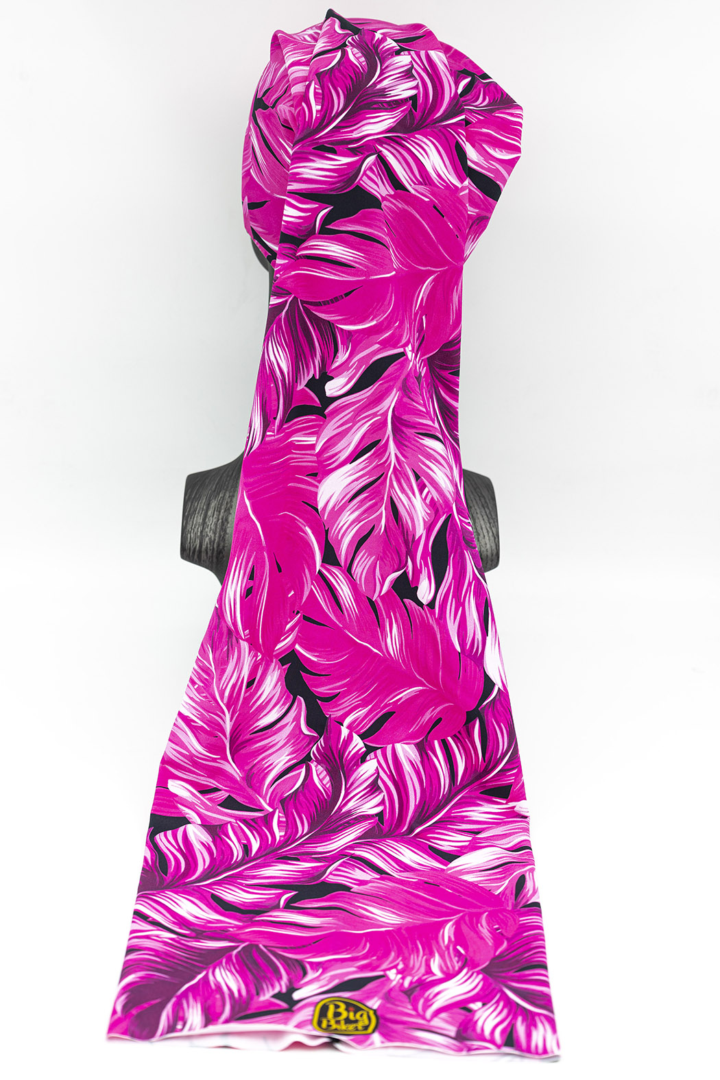 Tubular extralargo con diseño de hojas fucsia.