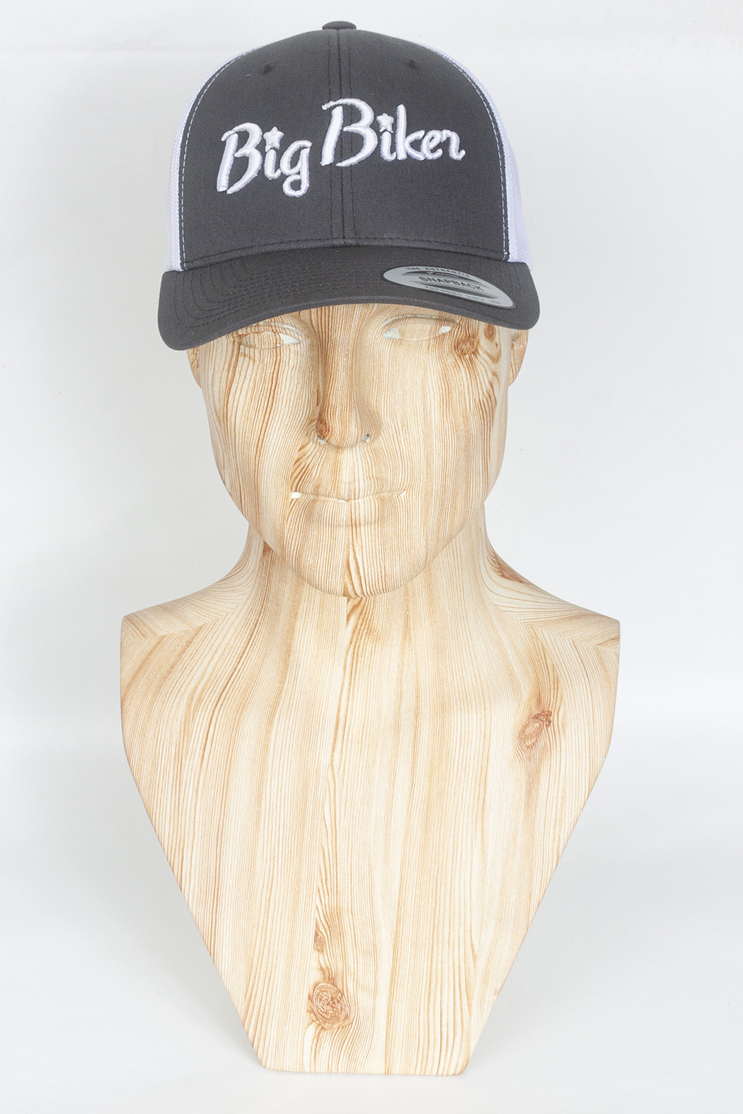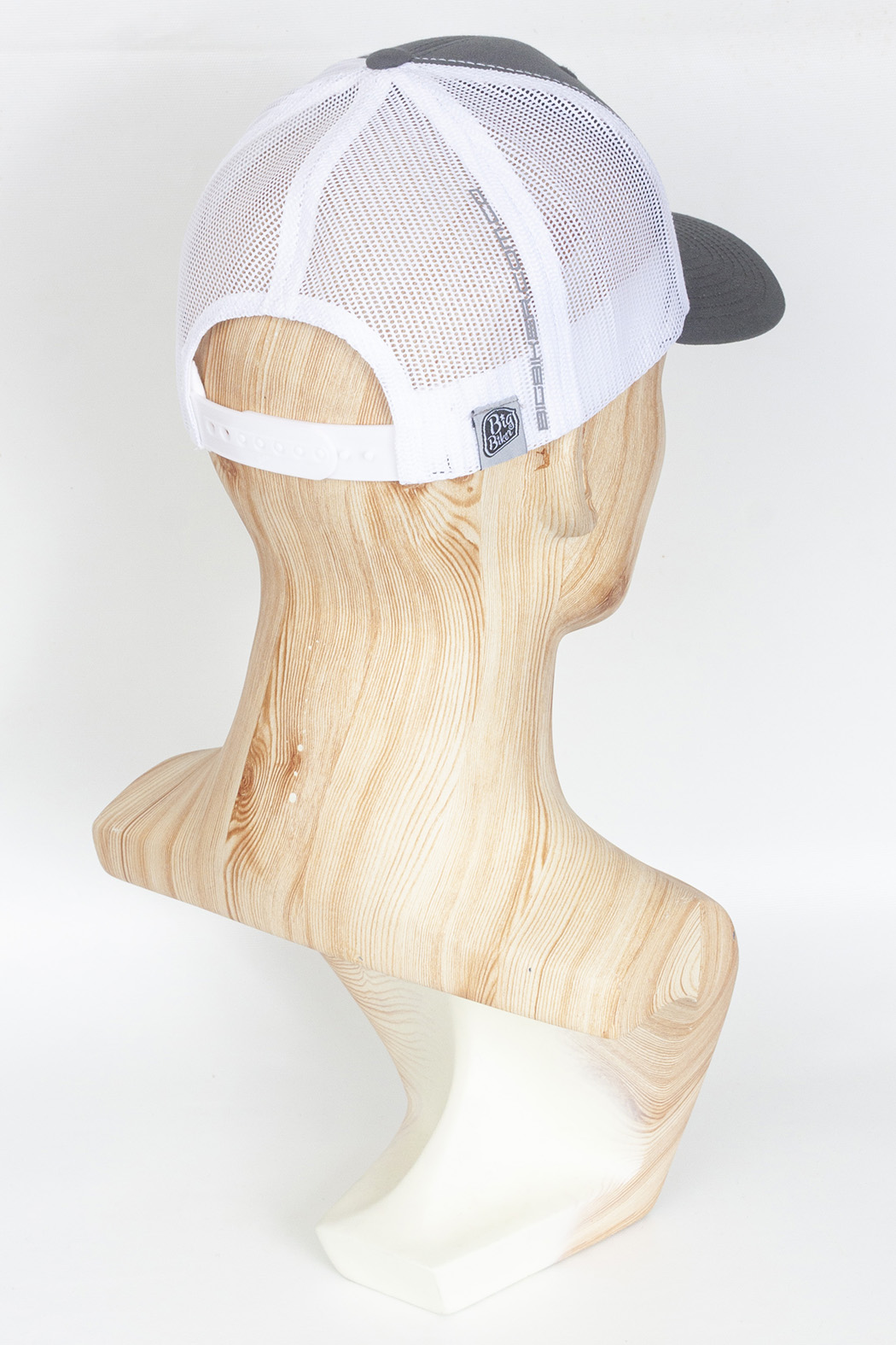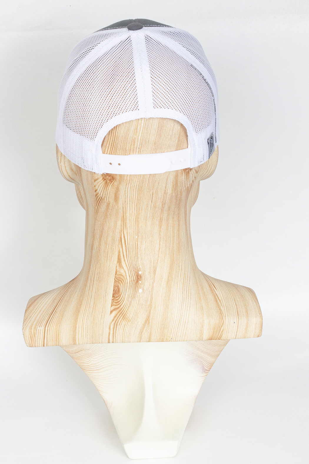 Gorra tipo trucker en colores gris y blanco. Marca Flexfit y Yupoong originales.